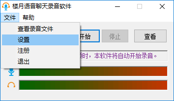 1,安装并运行“楼月语音聊天录音软件”后,点击“文件”,“设置”菜单。